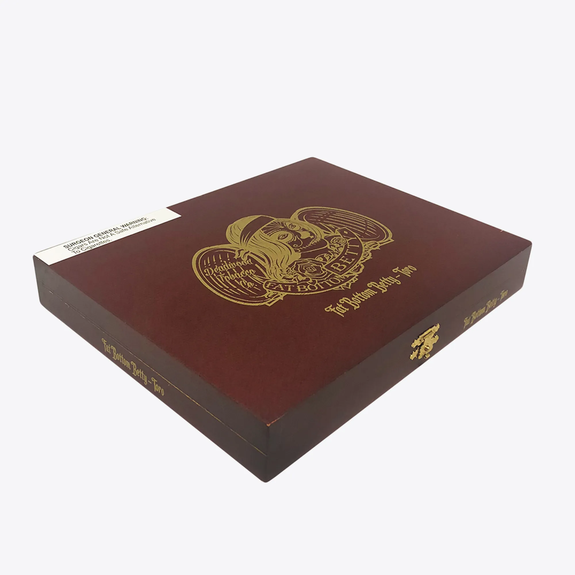 Deadwood Fat Bottom Betty Toro uses the same maduro wrapper and medium to full body as the rest of the series, with binder and filler details left undisclosed. The flavor usually begins with a sweet core and wood, then moves toward leather, black pepper, and dark roast coffee in a steadier progression through the middle and finish.