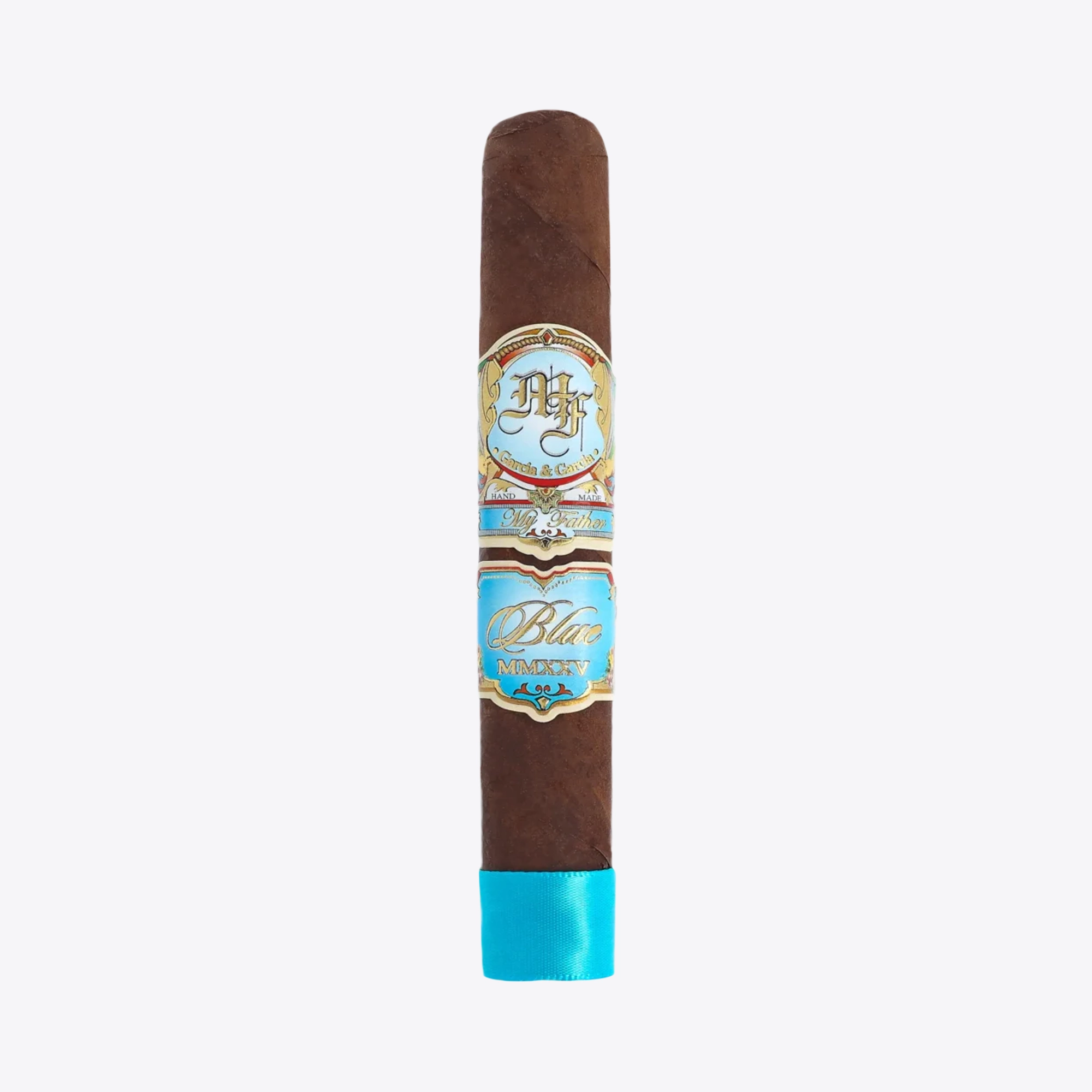 Cedar and cocoa come on quickly, then a clean pepper edge tightens the finish. My Father Blue Robusto is a box-pressed 5 1/4 x 52 cigar handcrafted in Honduras and released in 2025. A Connecticut Broadleaf Rosado wrapper covers Honduran binder and filler tobaccos grown on the Garcia family’s Finca La Opulencia.