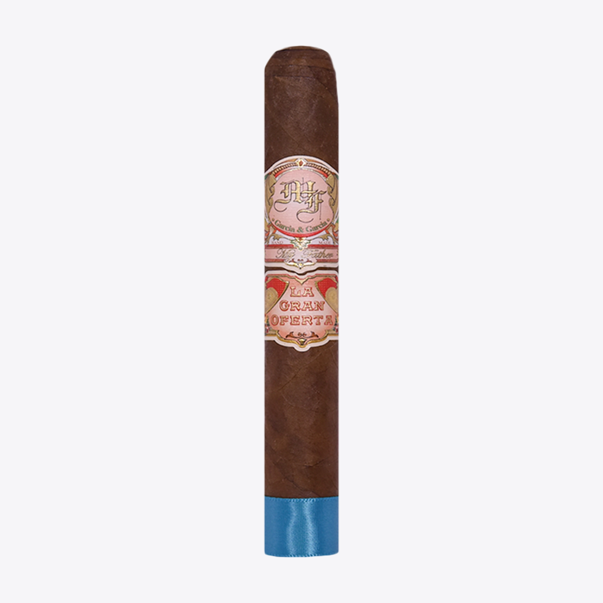 My Father-La Gran Oferta (The Great Offering) is the latest addition to the very well-known and prestigious “My Father” family. The cigars are rolled in the Garcia’s large facility in Estelí, Nicaragua, with Cuban-seed binder and filler tobaccos grown on their own Nicaraguan farms. The wrapper is a very oily Habano Rosado and it’s a medium to ¾ cigar. La Gran Oferta translates to “the great offering,” and the cigar features stunning artwork created after a very old cigar brand that sold under the same name, around 1913.