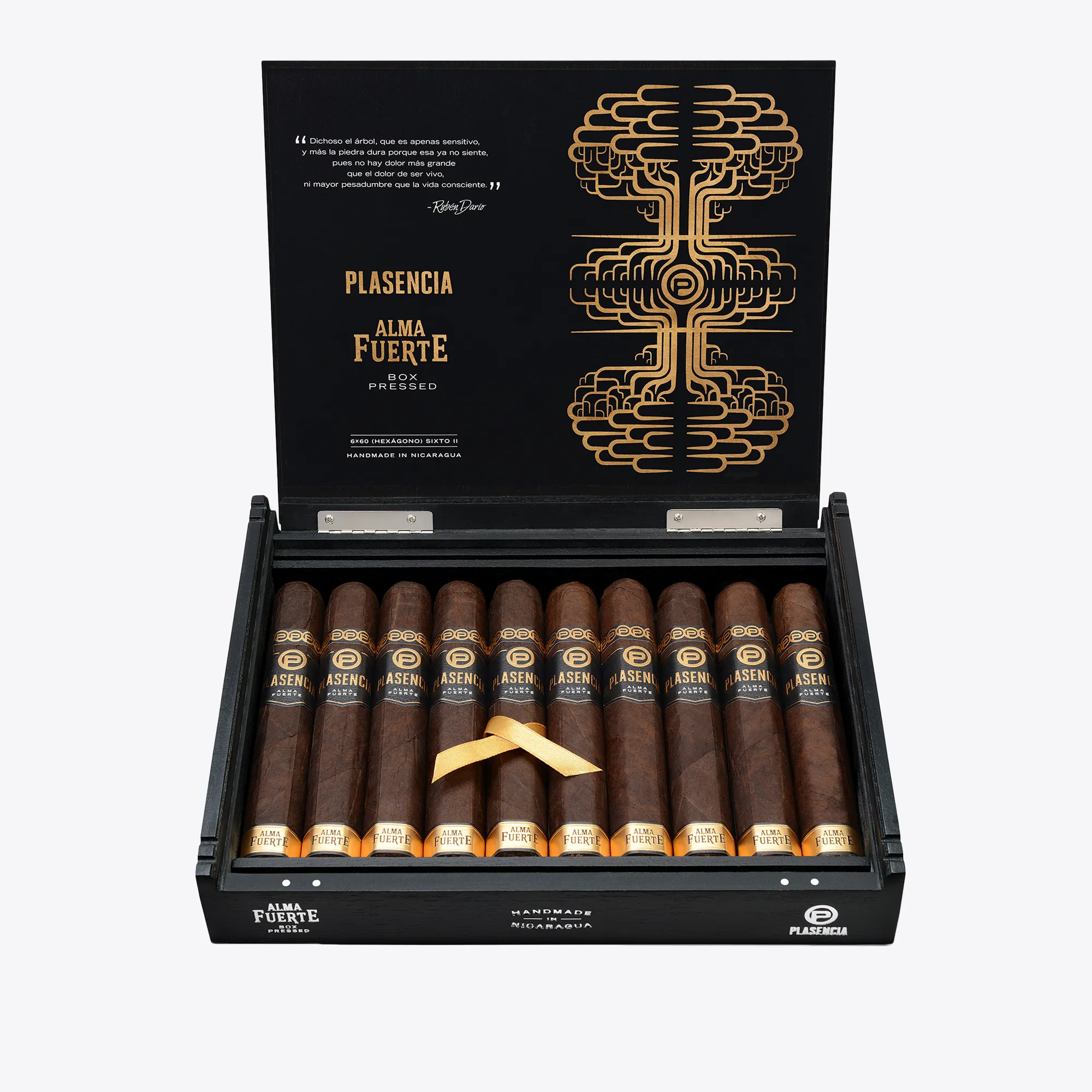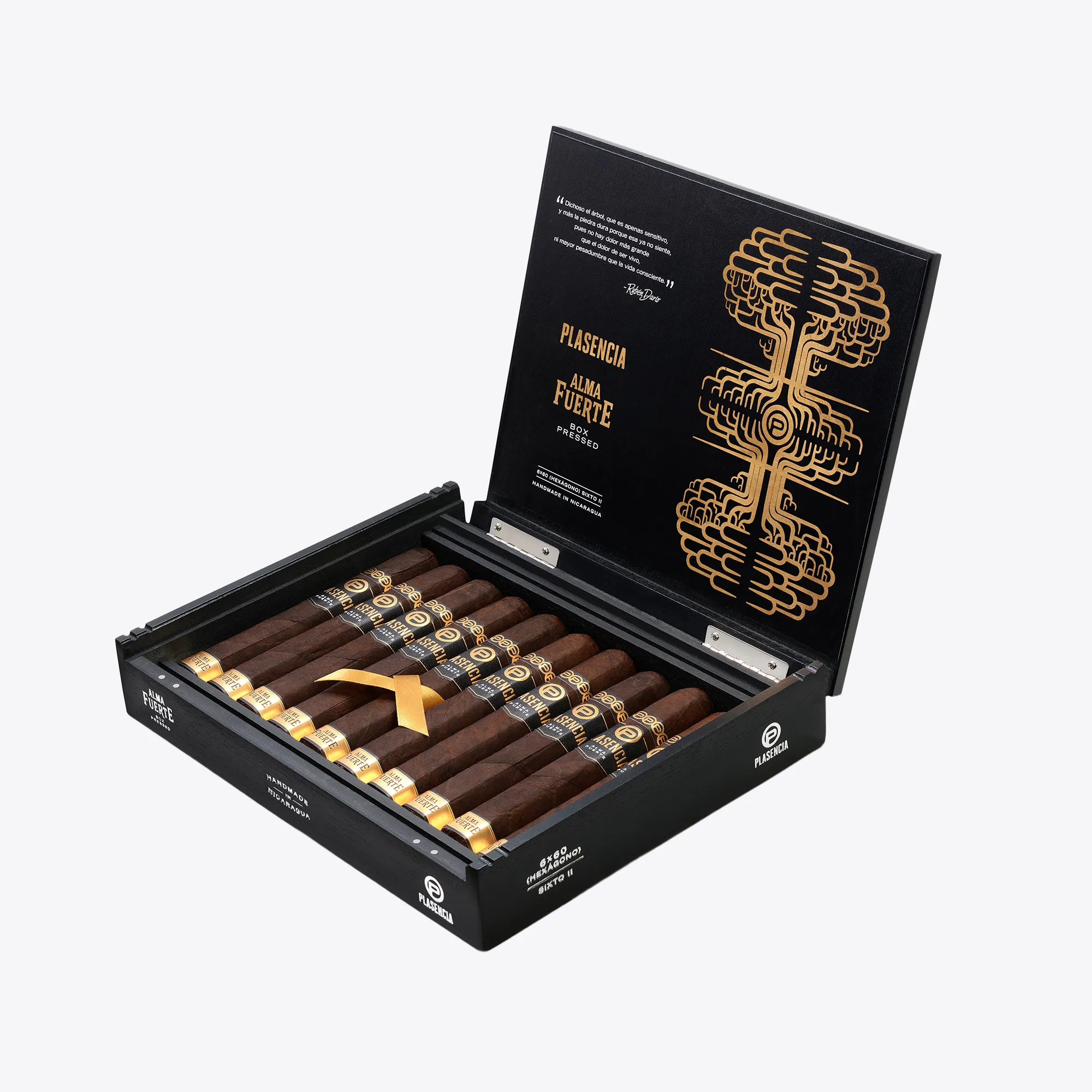 Plasencia Alma Fuerte Sixto II Hexagon stands out immediately because of its six-sided press and the darker, fuller direction of the blend. It is part of Plasencia’s Alma Fuerte line, a Nicaraguan puro made with aged tobaccos from the family’s own farms, using a Jalapa wrapper, a Nicaraguan binder, and fillers from Condega, Estelí, Jalapa, and Ometepe. The line is built around a stronger profile, and the Sixto II adds a distinctive hexagonal shape to that core blend.